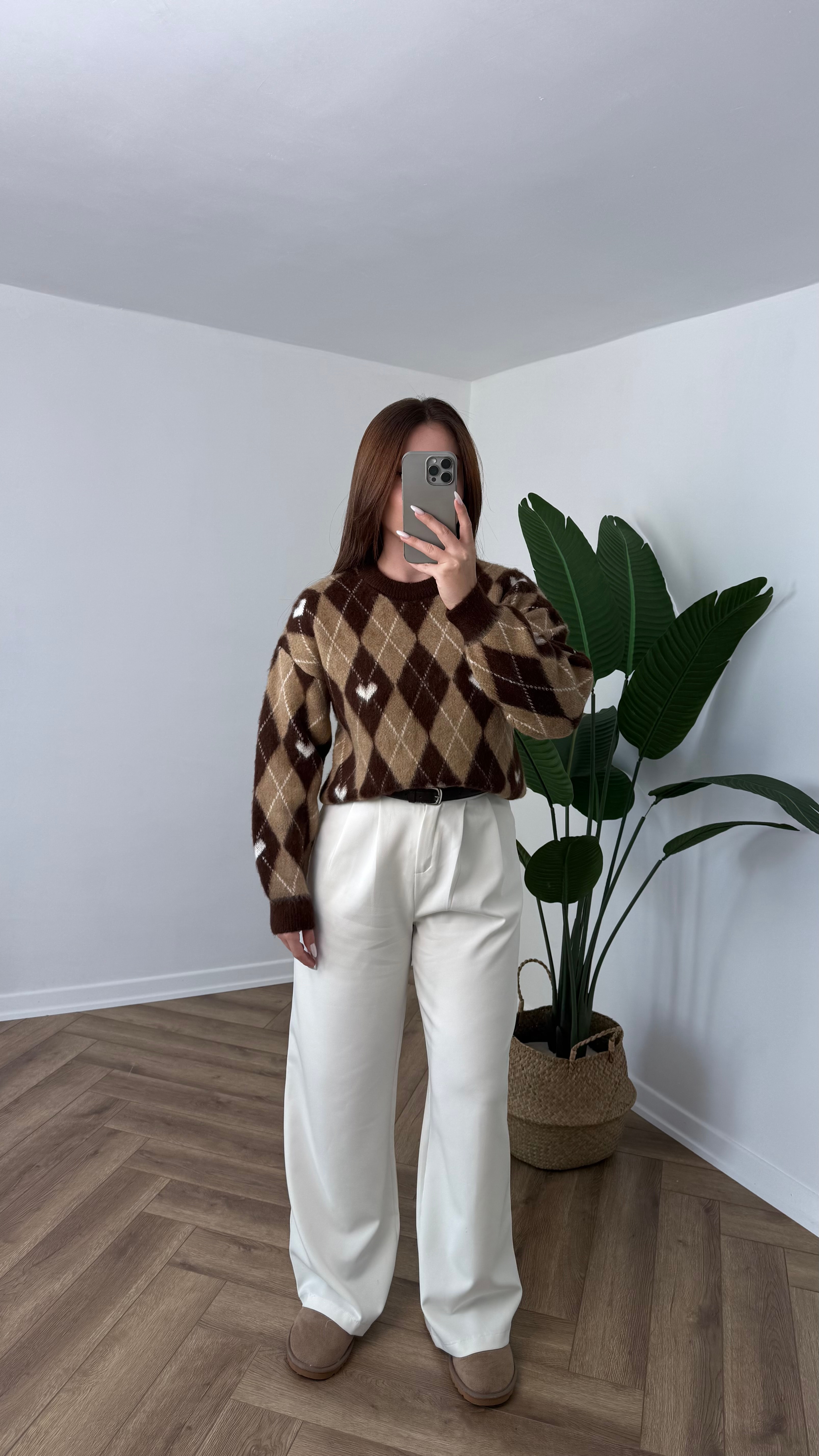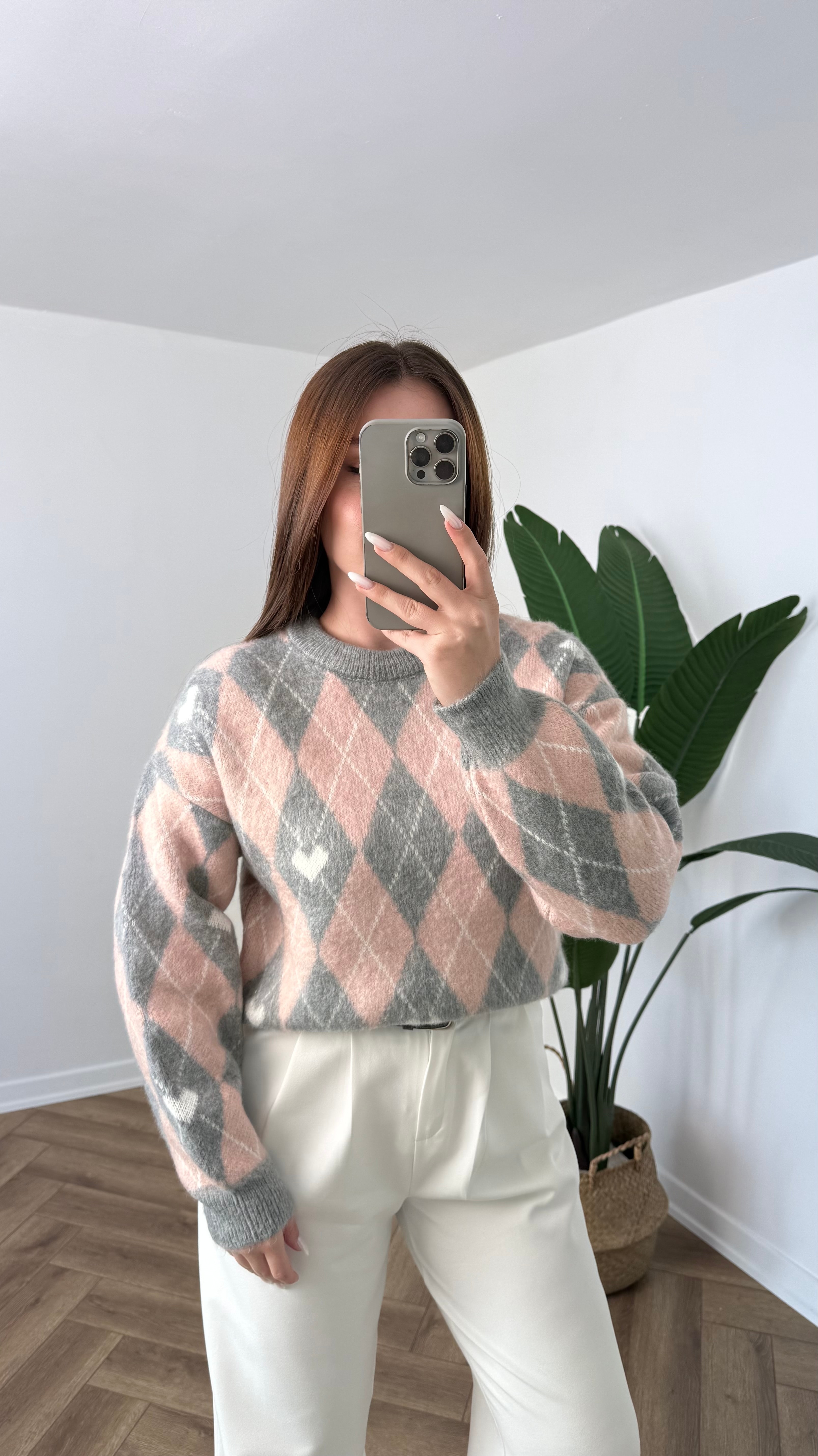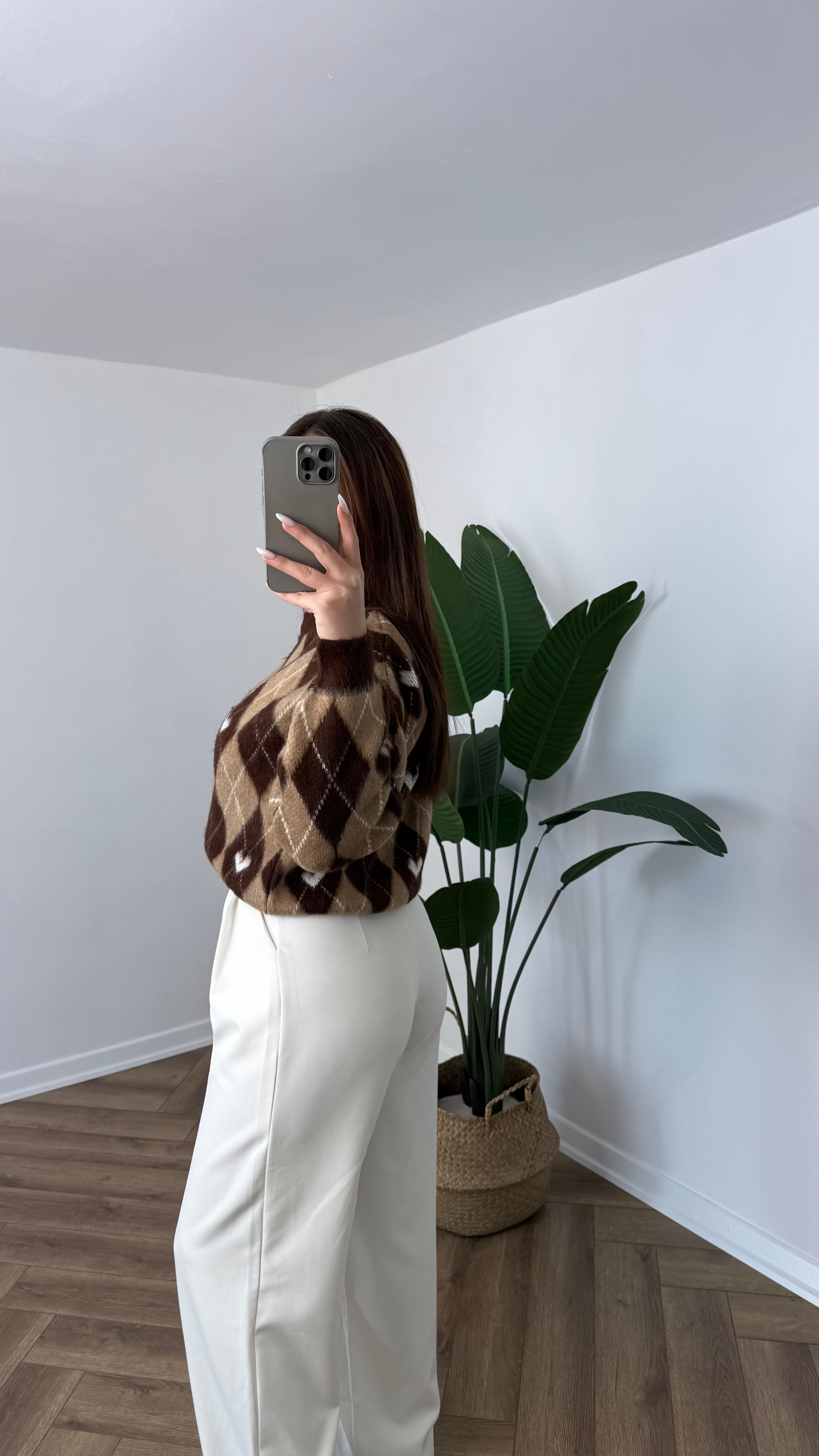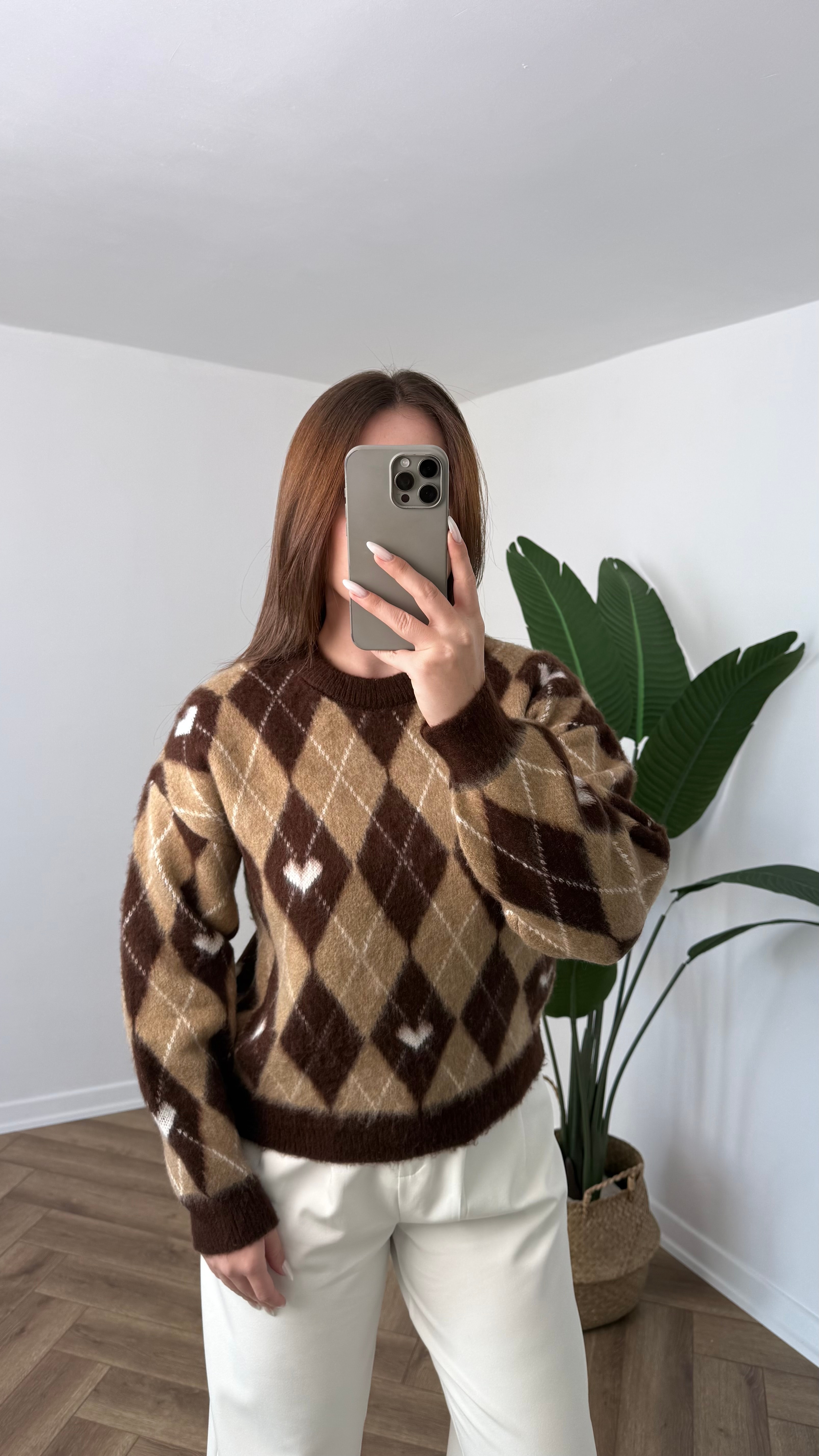 Yeni Sezon Sakallı Baklava Desen Oversize Kazak